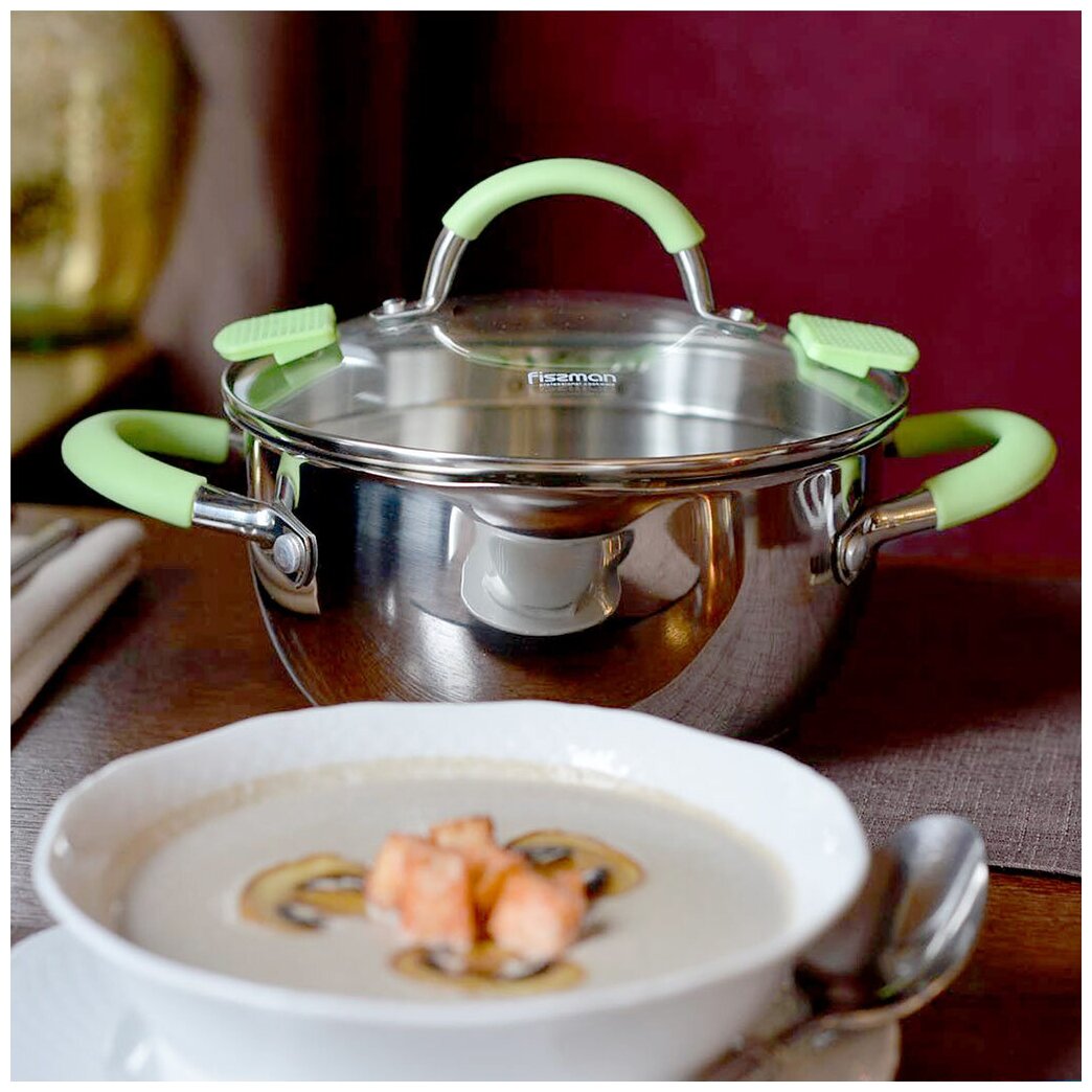 5501 FISSMAN Кастрюля CHARLOTTE 2,5 л; 20x10см с крышкой (нерж.сталь) Ручки - нерж.сталь, силикон; Крышка - стекло; Индукция; Термоаккумулирующее многослойное дно.
