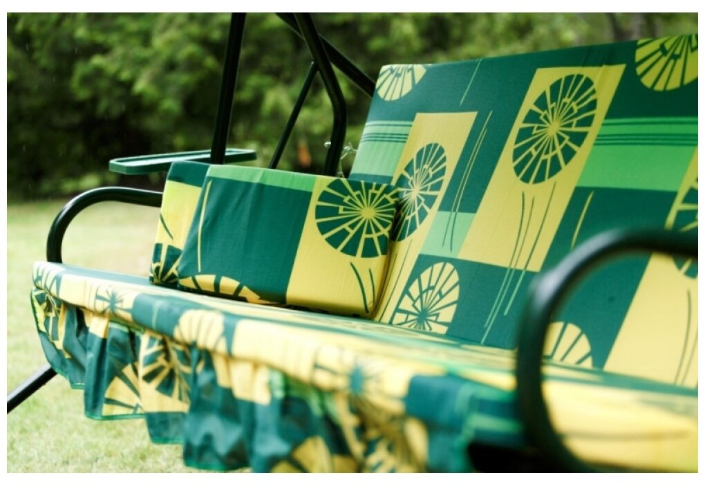 Лучшие цены. Размеры: длина - 214 см, ширина - 154,3 см, высота - 160 см. Размер сиденья: 170,6х54 см. Цвет: зелёный (как на картинке). Материалы: каркас - металлические трубы (32 х 1,4 мм), основание сиденья - оцинкованная сетка, тент - полиэфир, чехлы на мягкие элементы - полиэстер/хлопок, наполнитель мягких элементов - поролон (толщина 5 см). Технические характеристики: Тип: 3-х местные качели. Регулировка спинки осуществляется звеньями цепи на требуемый угол наклона. Магазины в вашем городе.