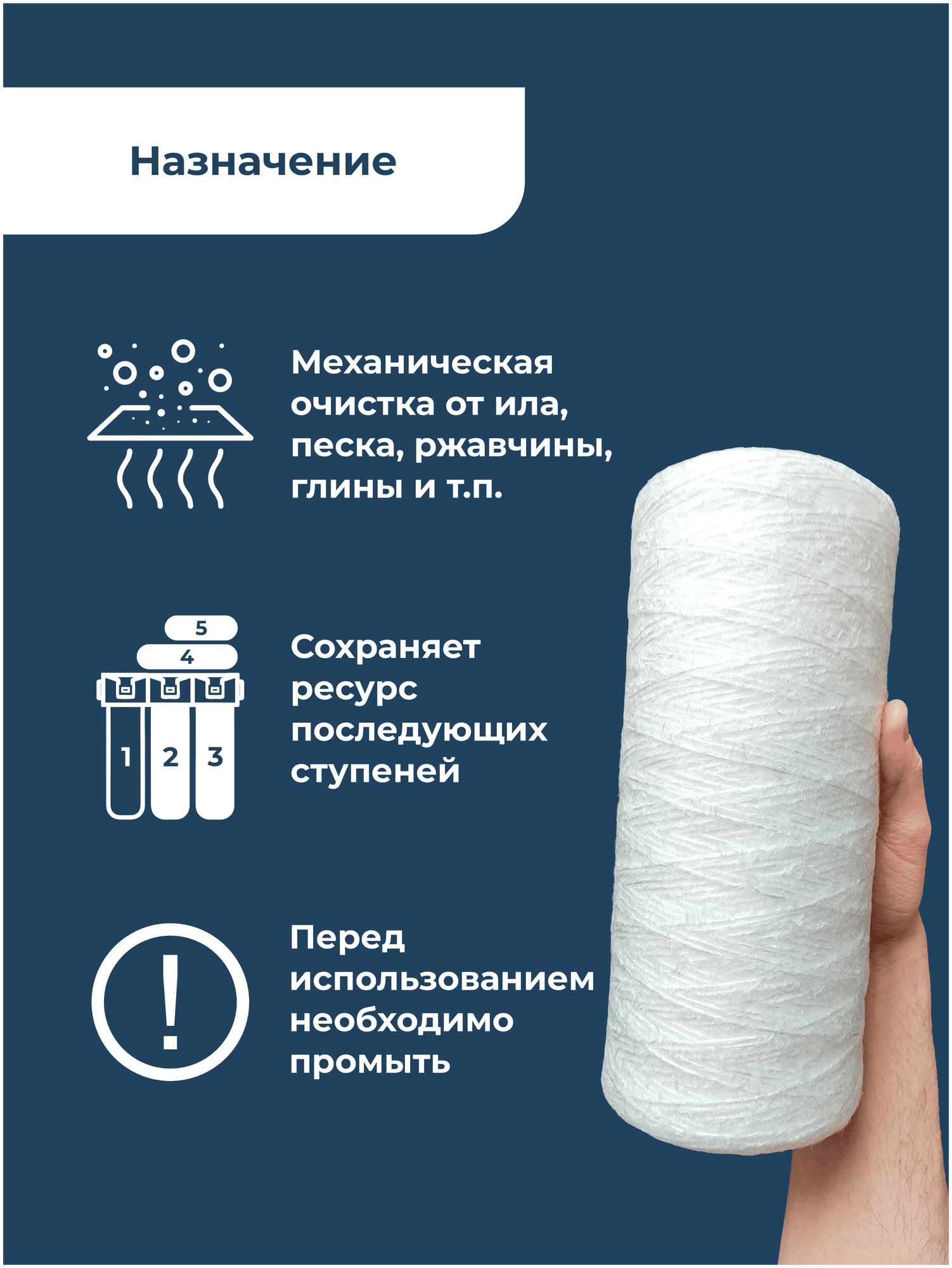 Картридж нитяной “Нептун” PS-10BB 5мкм (Комплект 3 шт). Грубая очистка воды от: ила, песка, глины, мусора, ржавчины, окалины, известняка, нерастворенного металла, фрагментов органики и т.п.