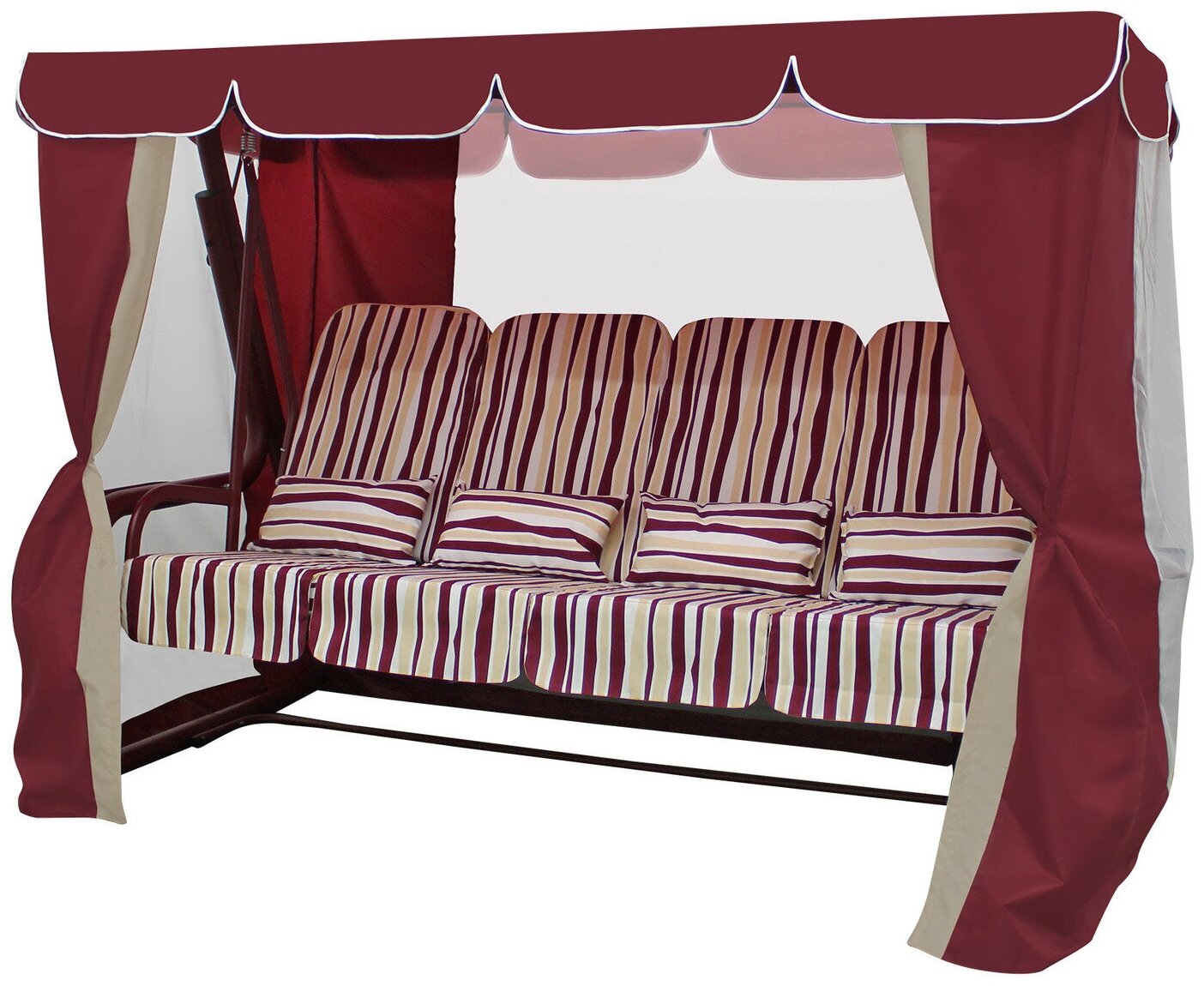 Качели садовые четырёхместные Arno Элит Люкс+ с москитной сеткой, до 400 кг, бежево-бордовые