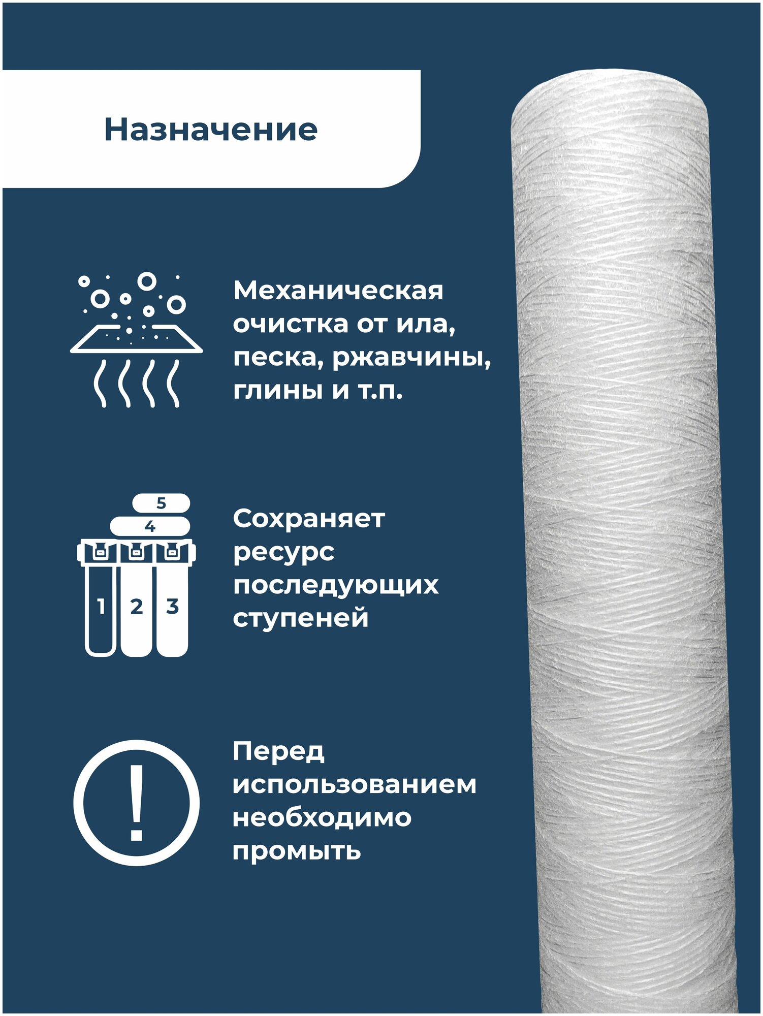 Картридж фильтра для очистки воды нитяной “Нептун” PS-20BB 50мкм. Грубая механическая очистка воды от ила, песка, ржавчины и т.д.