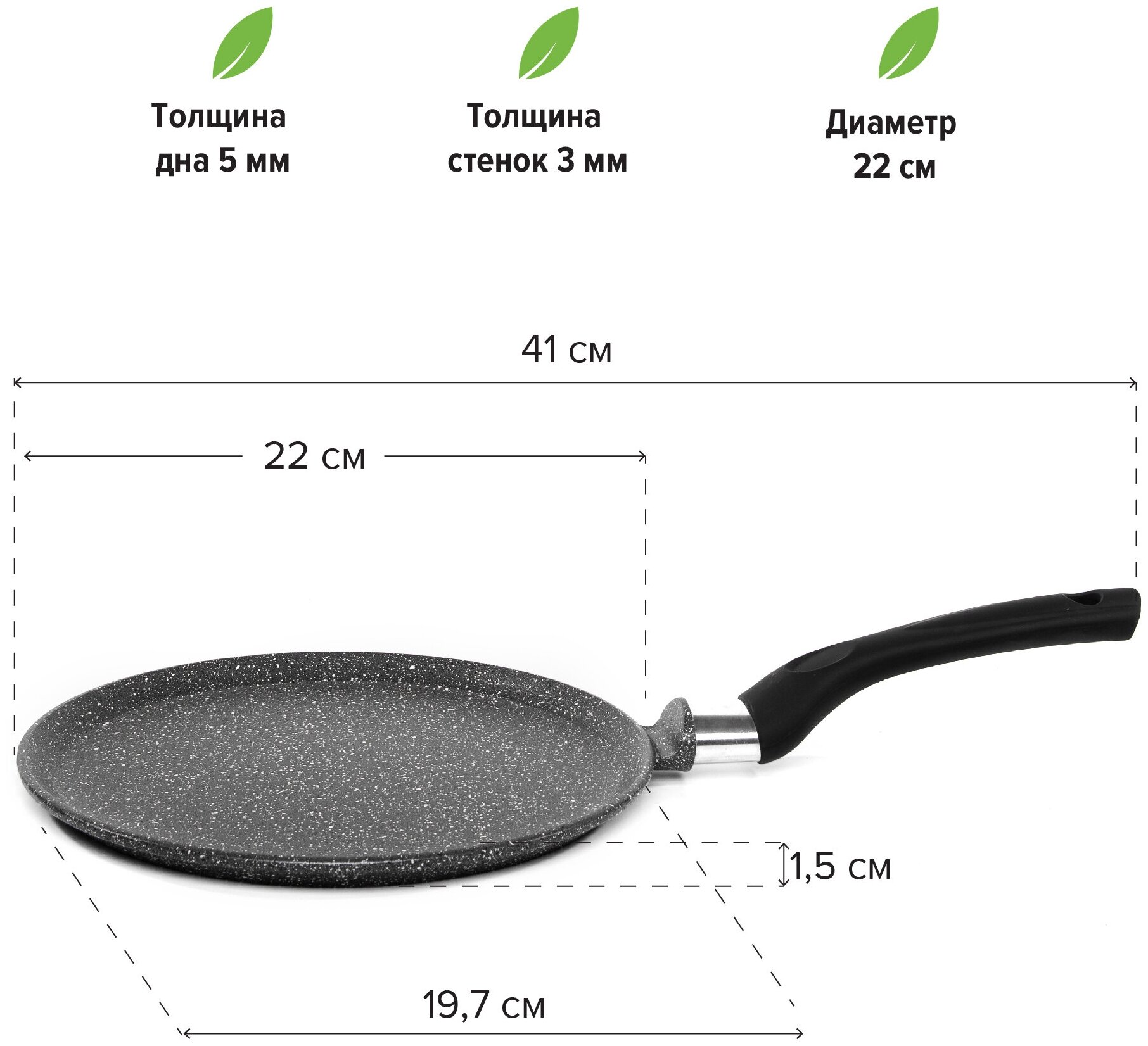 Сковорода блинная а/п, литая, 22 см, Комфорт, сер. гранит, катюша, арт. 7222