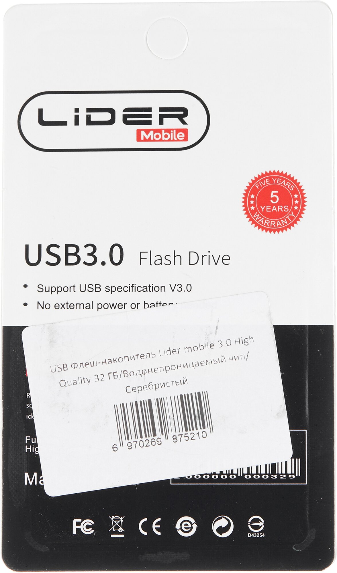USB Flash (флешка) USB Флеш-накопитель Lider mobile 3.0 High Quality 32 ГБ/Водонепроницаемый чип/ Cеребристый