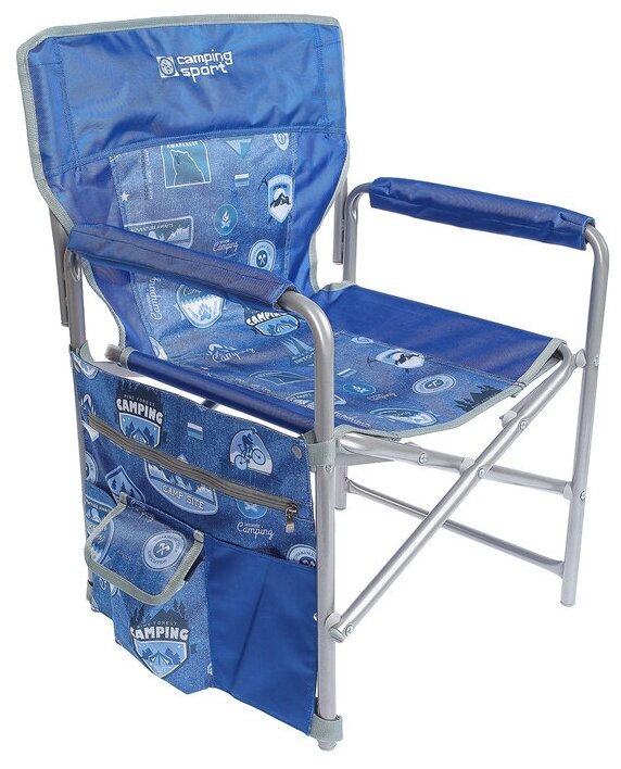 Кресло складное с карманами КС1/ДС арт.КС1/ДС серый синий, без м/э