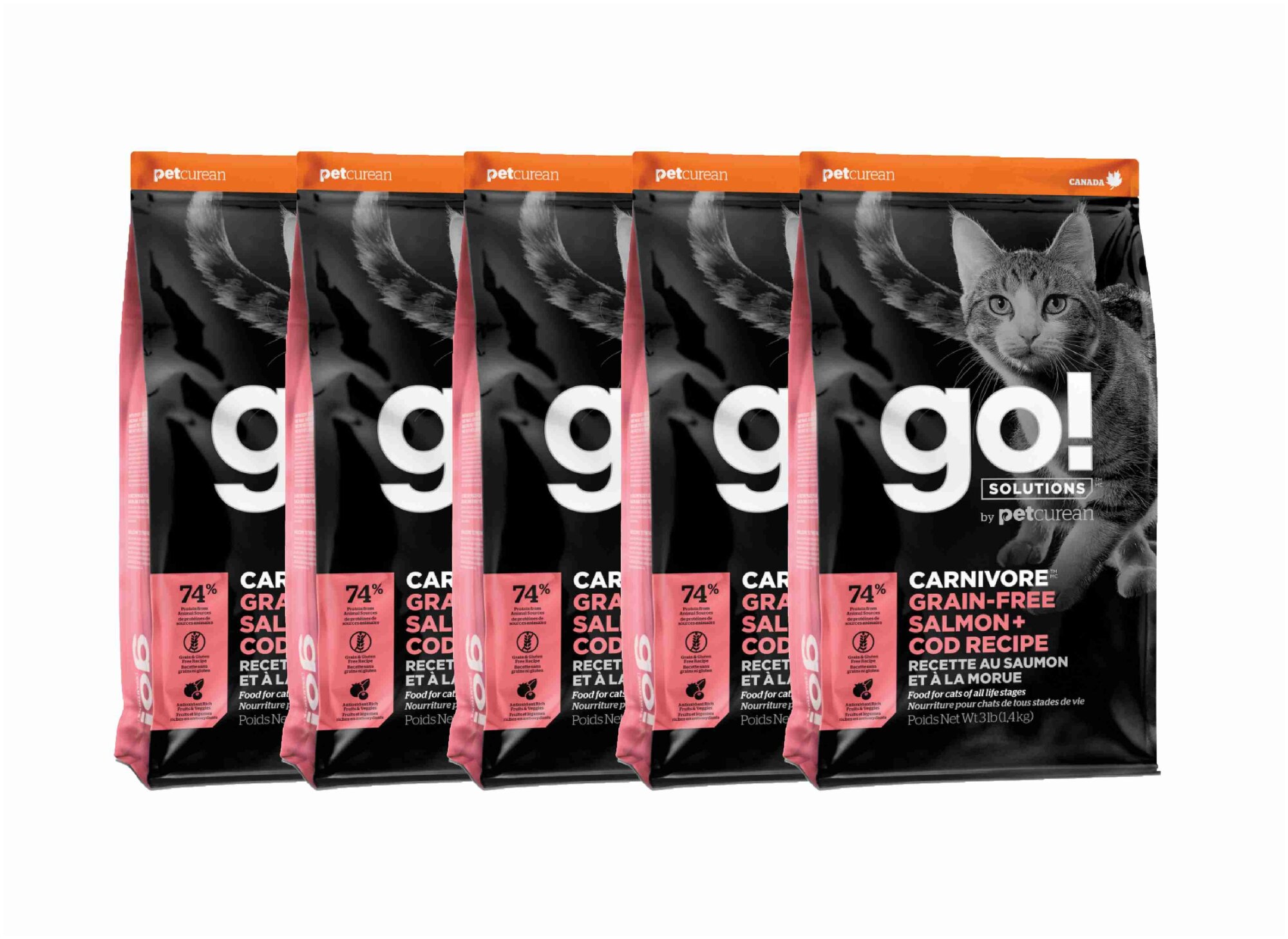 Корм для кошек GO! для Котят и Кошек с Лососем и Треской (GO! CARNIVORE GF Salmon + Cod Recipe for Cats) 1,36 кг х 5 шт.