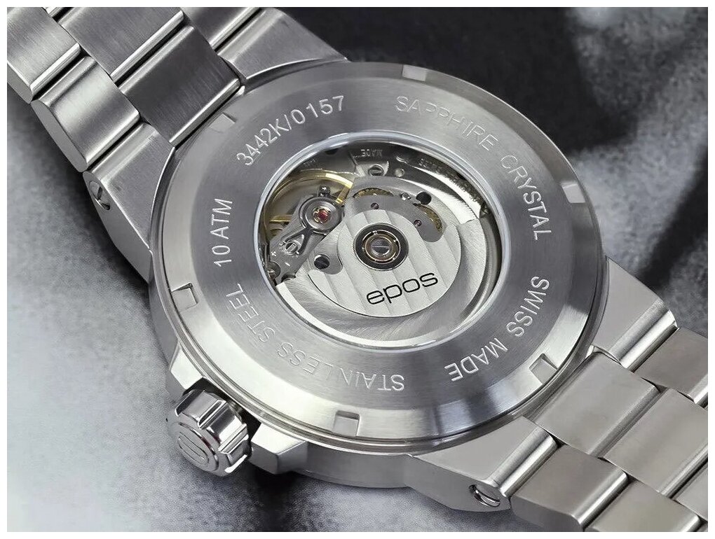 Лучшие цены. Если вы предпочитаете строгий деловой стиль в одежде, швейцарские мужские наручные часы Epos 3442.132.20.13.30 именно для вас. Материал корпуса: нержавеющая сталь 316L Материал браслета: нержавеющая сталь 316L Сапфировое стекло Механизм: механические Водозащита: 10 bar (Можно плавать, нырять без акваланга) Особенности: люминесцентные стрелки, индикатор даты, раскладная застежка с фиксатором, декорированный механизм, прозрачная задняя крышка Габариты: 42 х 10,4 Официальная гарантия 2 года. Магазины в вашем городе.