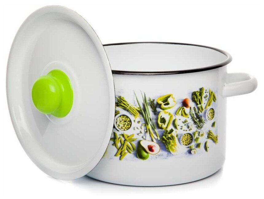 Кастрюля эмалированная сталь, 4.5 л, с крышкой, крышка сталь, Appetite, Свежая зелень, 1с17с, индукция