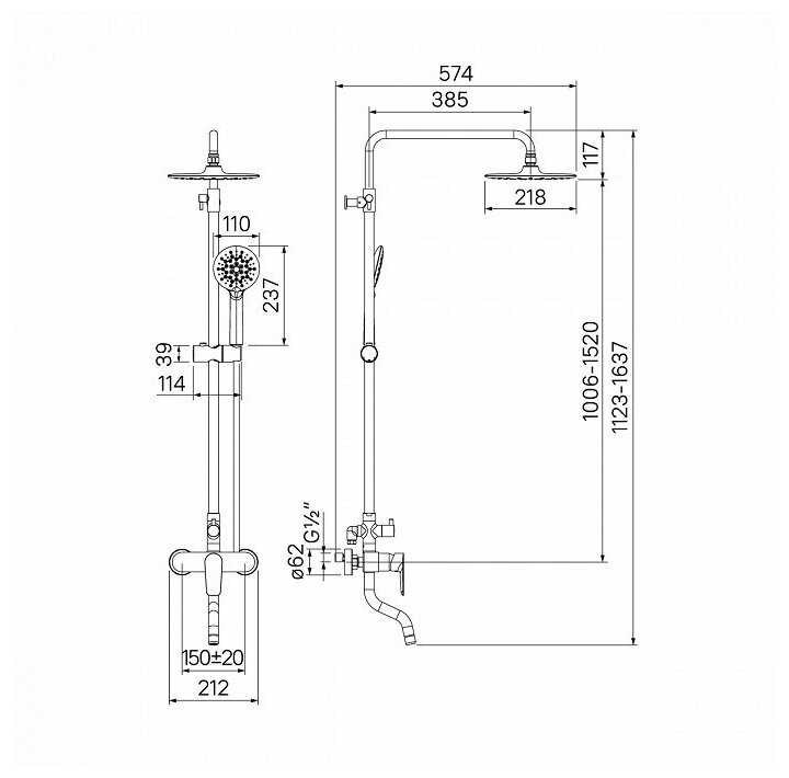 | Размеры верхнего душа | 218 мм |