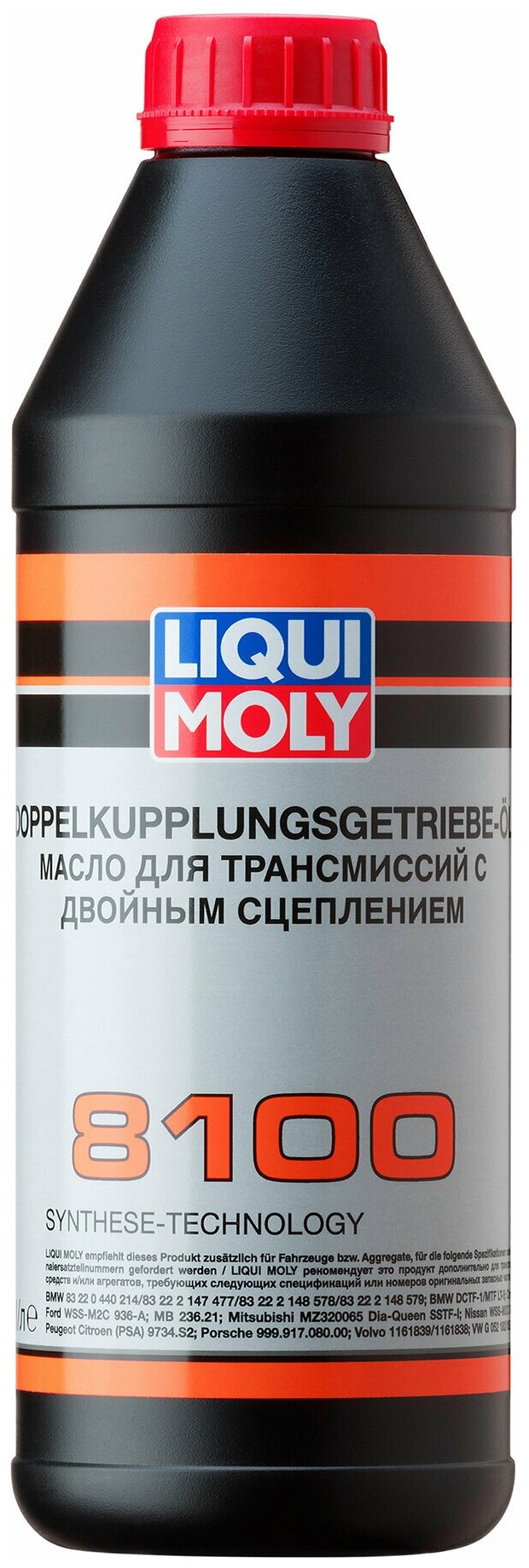 Лучшие цены. Место применения: АКПП Наименование: Doppelkupplungsgetriebe-Oil 8100 Объём: 1л Состав: синтетическое Тип: Масло трансмиссионное Страна производства: Германия Специальное масло для роботизированных коробок передач с двойным сцеплением, предназначенное для качественного выполнения всех функций данного типа трансмиссий: быстрое включение/выключение фрикционных муфт, смазка шестерен и синхронизаторов, оптимальная работа гидравлических сервоприводов. Магазины в вашем городе.