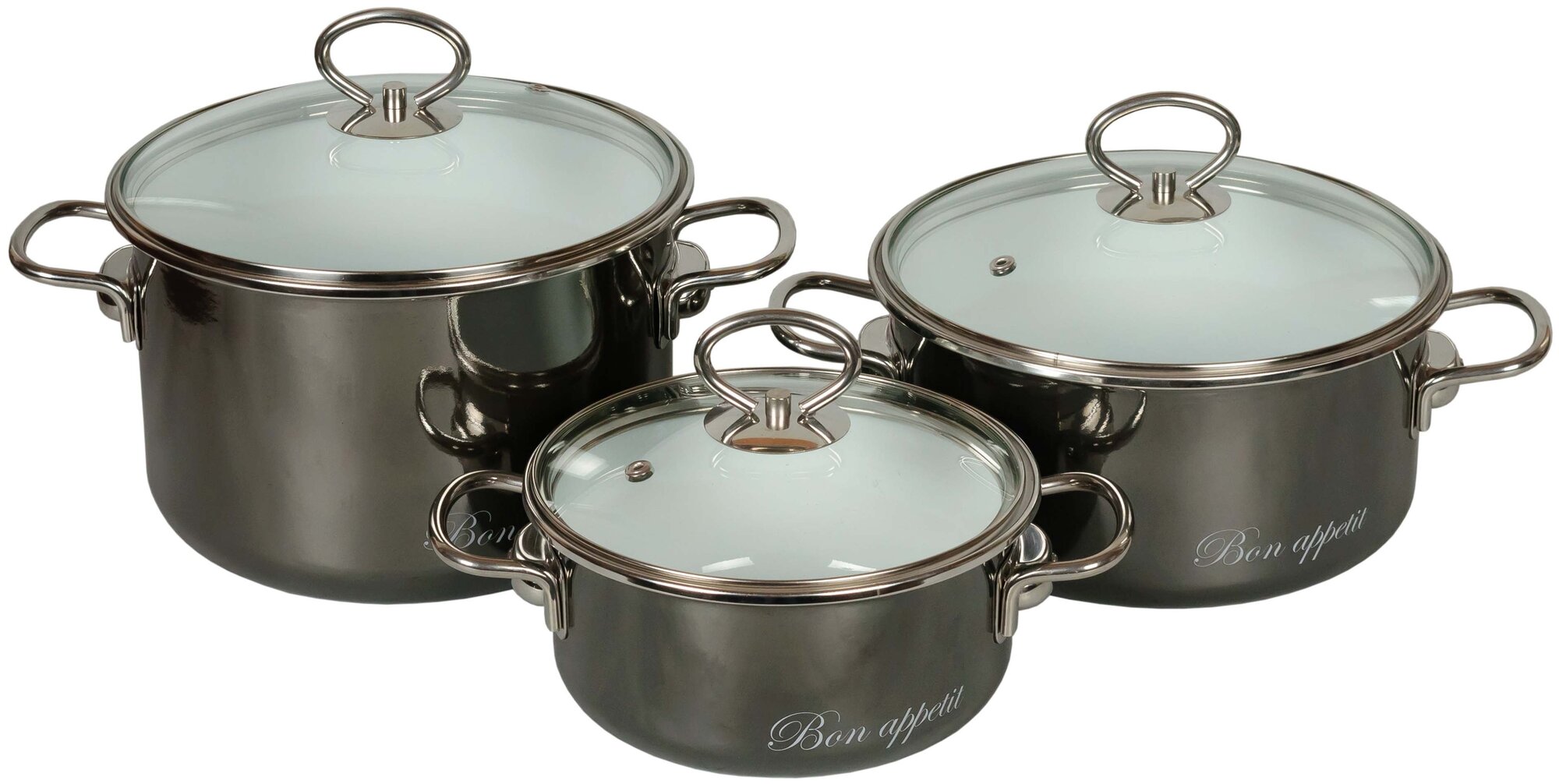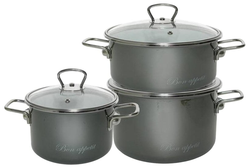 Набор кастрюль эмалиров. №13 "BON APPETIT" мокр. Асфальт (2 + 3 + 4 Л) "стальэмаль" 8DB135S
