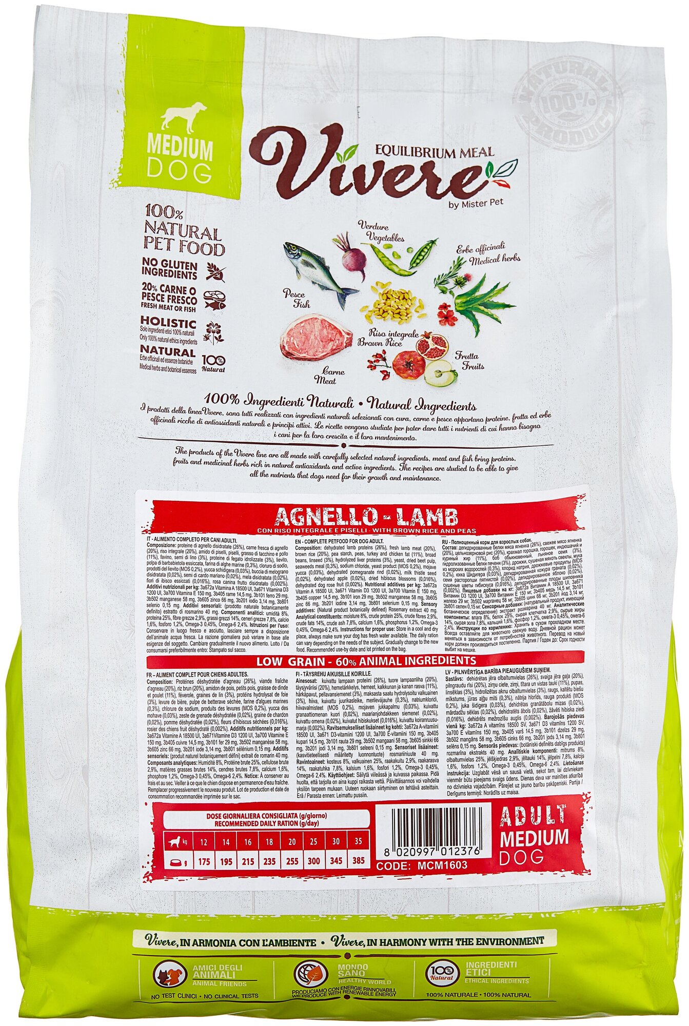 Vivere корм для собак средних пород, низкозерновой, ягненок 12 кг