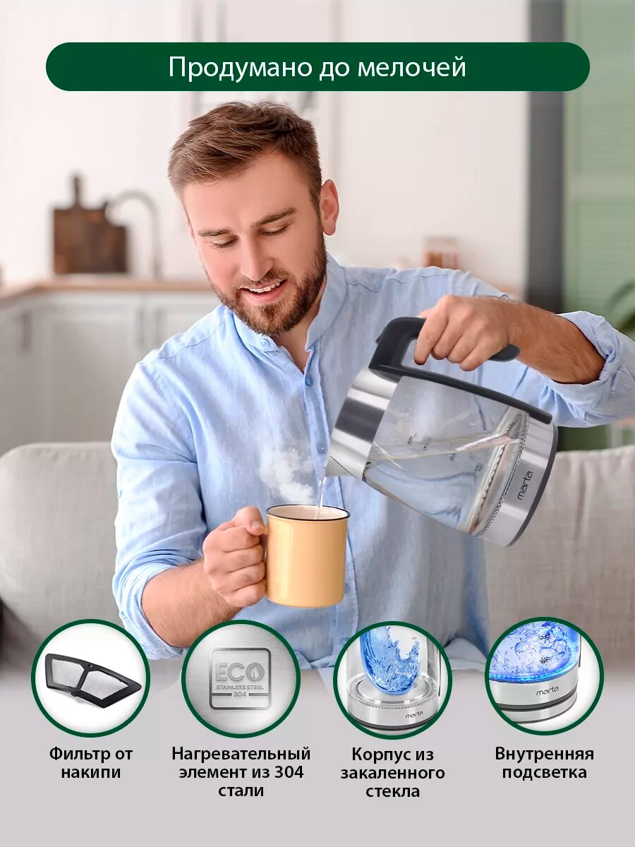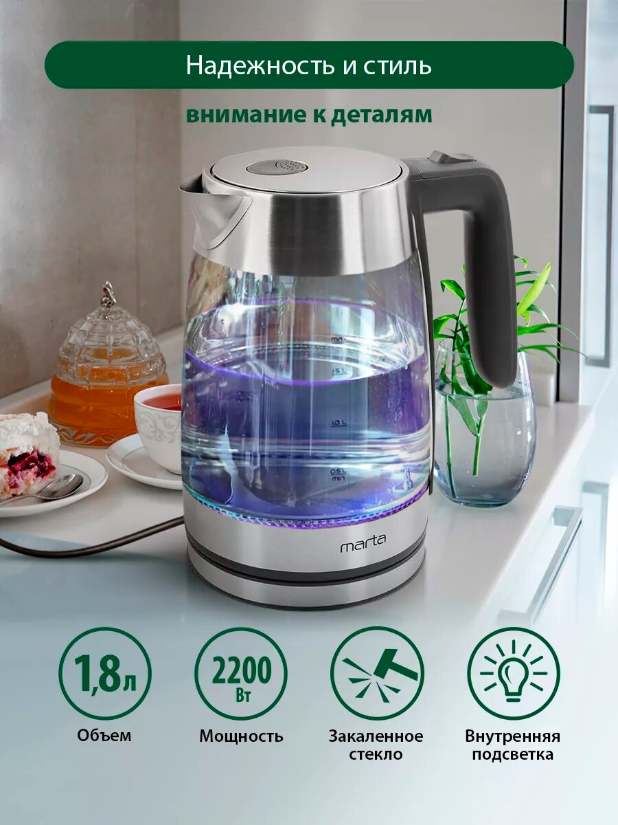 Электрочайники MARTA MT-4553 чайник стеклянный