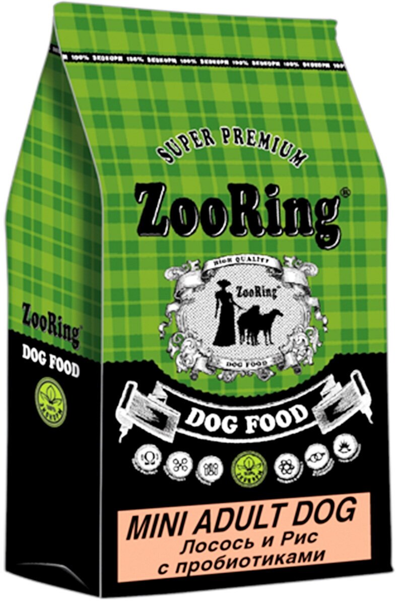 ZooRing Mini Adult Dog Сухой корм для собак, Лосось / Рис с пробиотиками 10кг