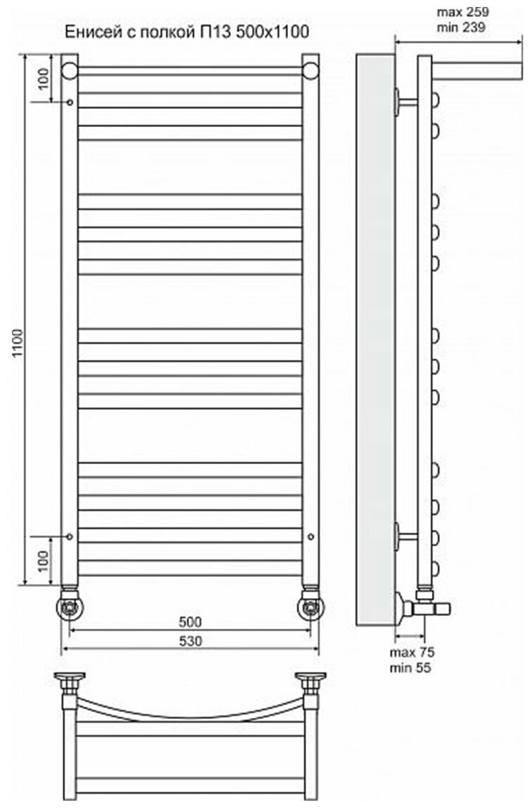 Водяной полотенцесушитель TERMINUS Енисей с полкой П13 530х1100