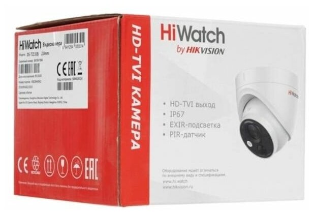 Лучшие цены. 2 Мп (1920×1080) HD-TVI-камера HiWatch DS-T213 (B) (2.8 мм) рассчитана на работу вне помещений в любое время года: корпус соответствует стандарту защиты от пыли и влаги IP67, рабочие температуры — -40 °C… +60 °C. Укомплектована PIR-сенсором, детектирующим перемещение объектов по изменению ИК-поля. Угол обзора сенсора — 110°, дальность действия — 11 м. Обратите внимание! Данная камера работает только в аналоговом или в HD-TVI режиме. Магазины в вашем городе.