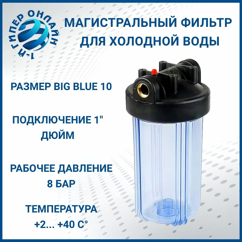 Фильтр для воды Фильтр магистральный Kristal колба Big Blue 10" T 1" прозрачный