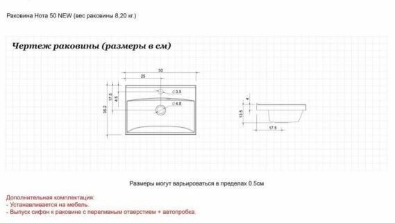 Умывальник Раковина для тумбы Aquanet Нота 50 NEW