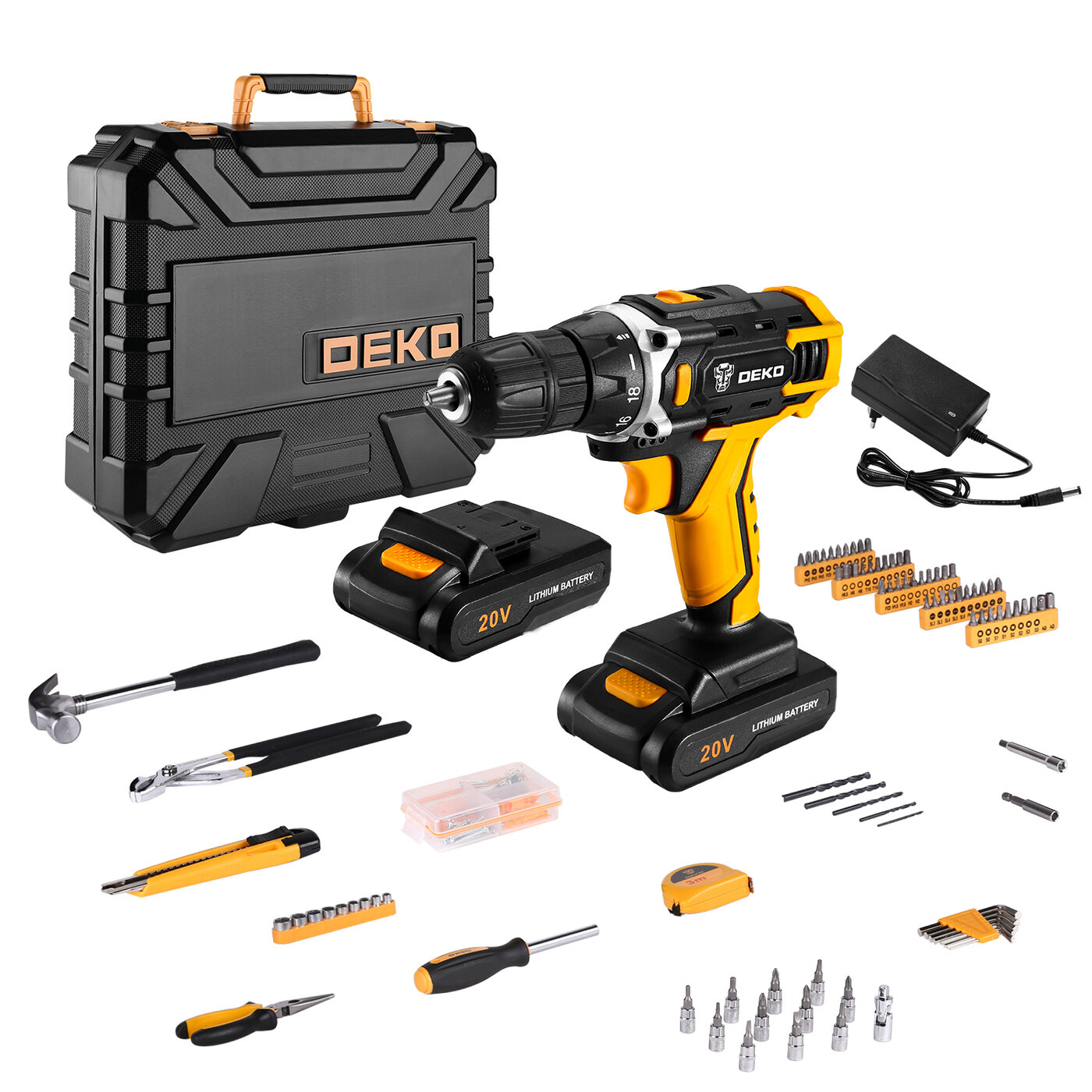 Аккумуляторная дрель-шуруповерт DEKO DKCD20FU-Li в кейсе + набор 195 инструментов для дома, 20В