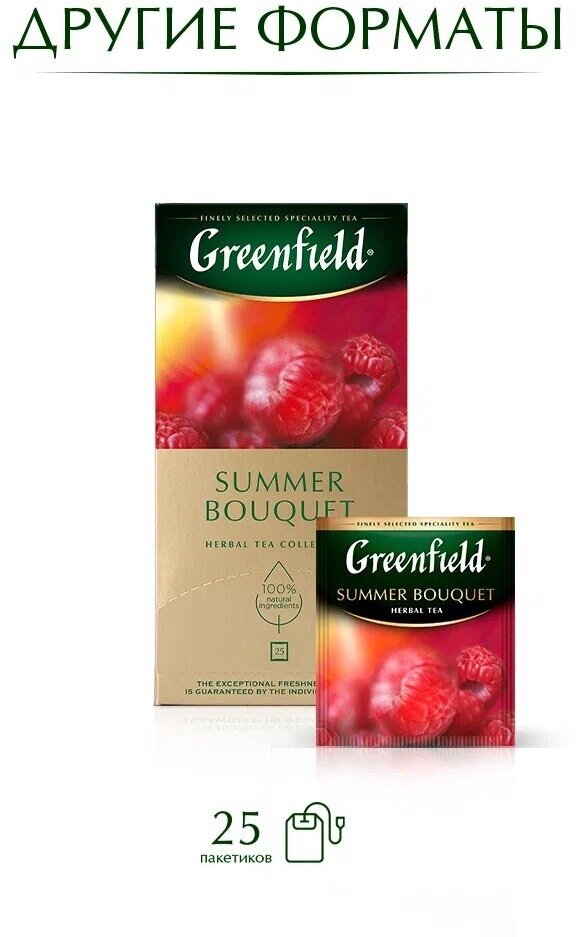 Чай GREENFIELD (Гринфилд) "Summer Bouquet", фруктовый (малина, шиповник), 25 пакетиков в конвертах по 1,5 г, 0433 (цена за 1 ед.товара)