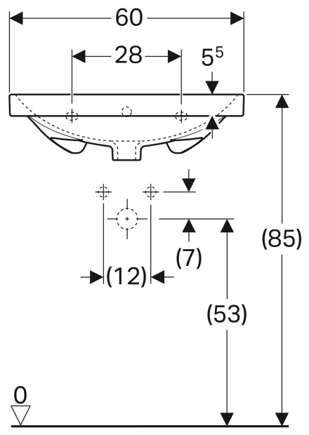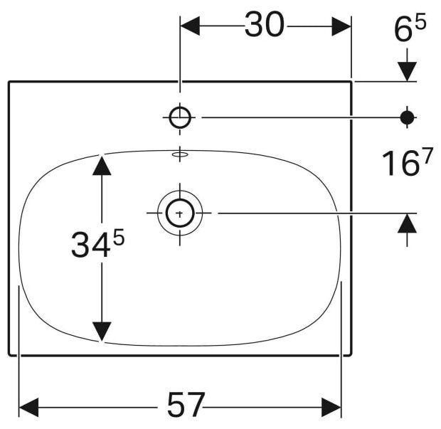 Раковина Geberit Acanto 500.620.01.2, 600 x 480 мм, с отв. под смеситель, с переливом