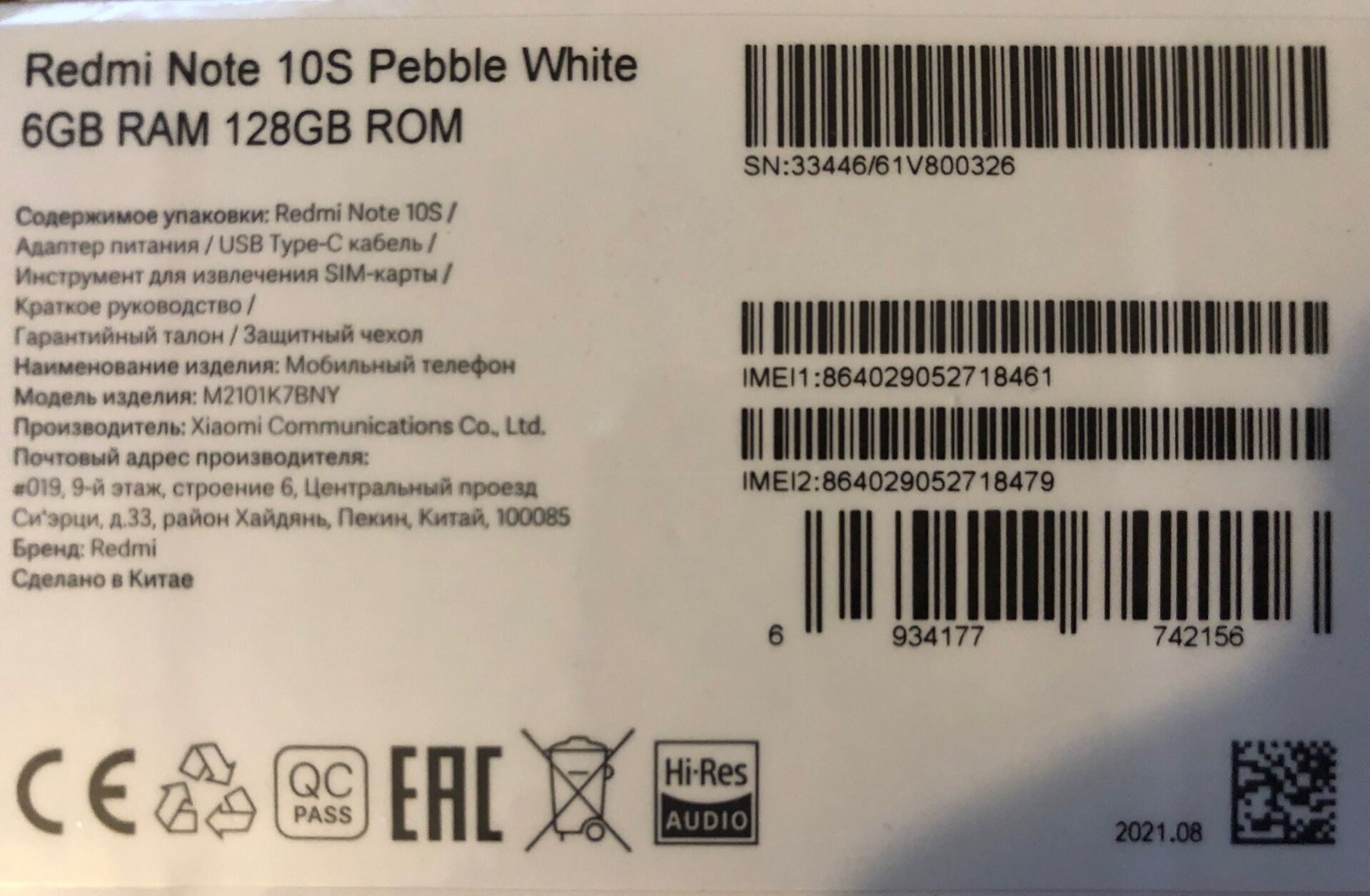 Смартфон Xiaomi Redmi Note 10S, 8/128ГБ, global, Official standard, Xiaomi, Redmi Note 10S, Смартфон, Белый, 8ГБ, 128ГБ, global, новый, 01.01.2021