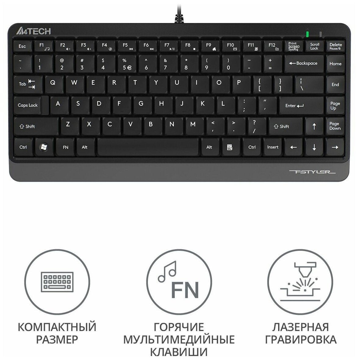 Клавиатура USB A4-Tech Fstyler FK11 USB slim чёрная/серая
