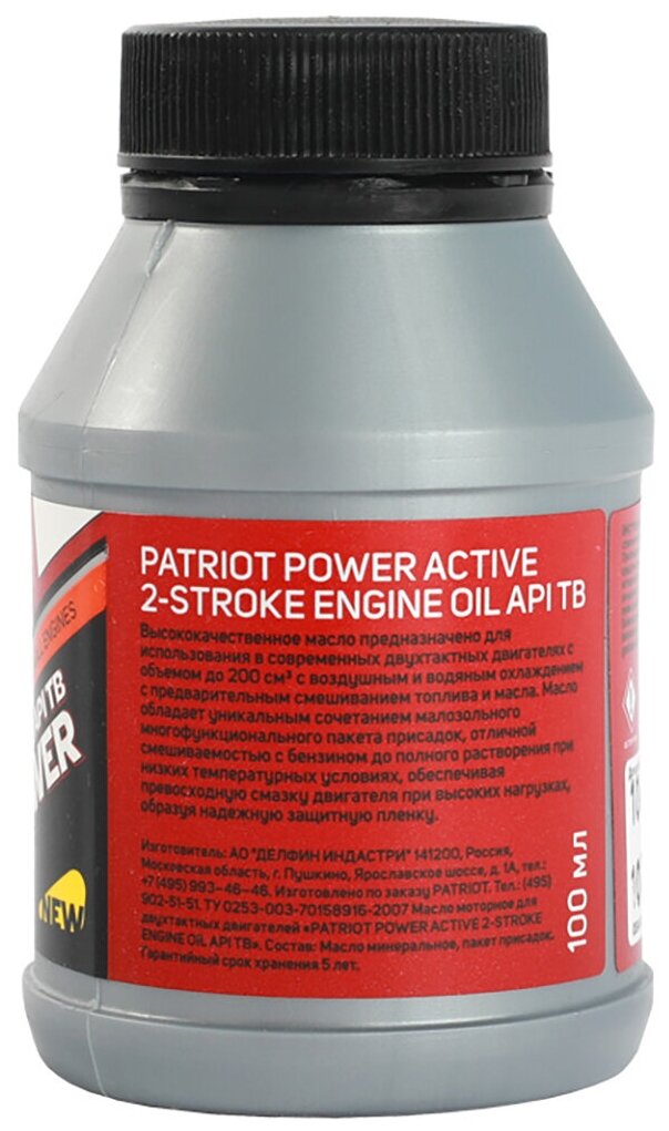 Моторные масла Моторное масло минеральное PATRIOT POWER ACTIVE 2T/ 100 мл/ для двухтактных двигателей/ бензопил/ триммеров