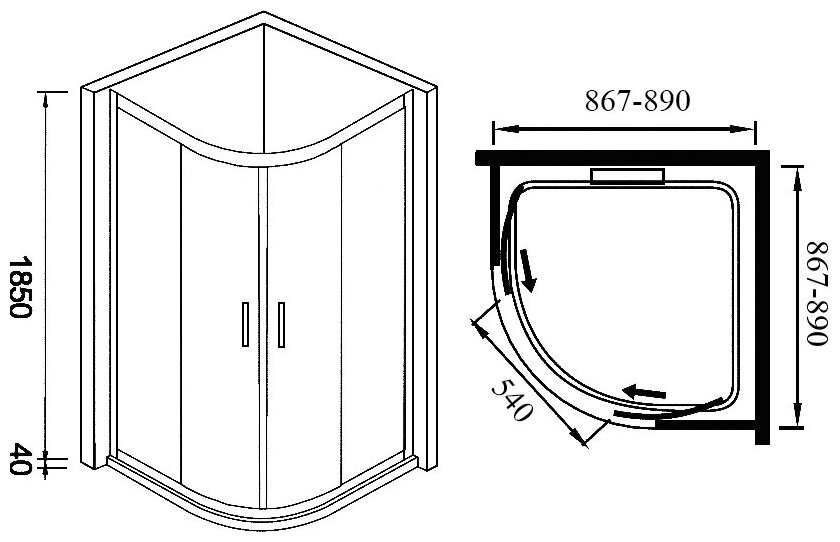 Лучшие цены. Тип душевой уголок Ширина, см 90 Глубина, см 90 Высота, см 185 Область применения бытовая Стиль современный стиль Форма четверть круга Ориентация универсальная Поддон в комплекте нет, приобретается отдельно Цвет профиля хром Конструкция дверей раздвижная Количество секций двери 2 Толщина полотна двери, мм 6 Материал полотна двери стекло Исполнение полотна двери прозрачное Ширина входа, см 54 Регулируемая ширина да * Профиль хром. Фурнитура металл хром. * Стекло прозрачное 6 мм. Магазины в вашем городе.