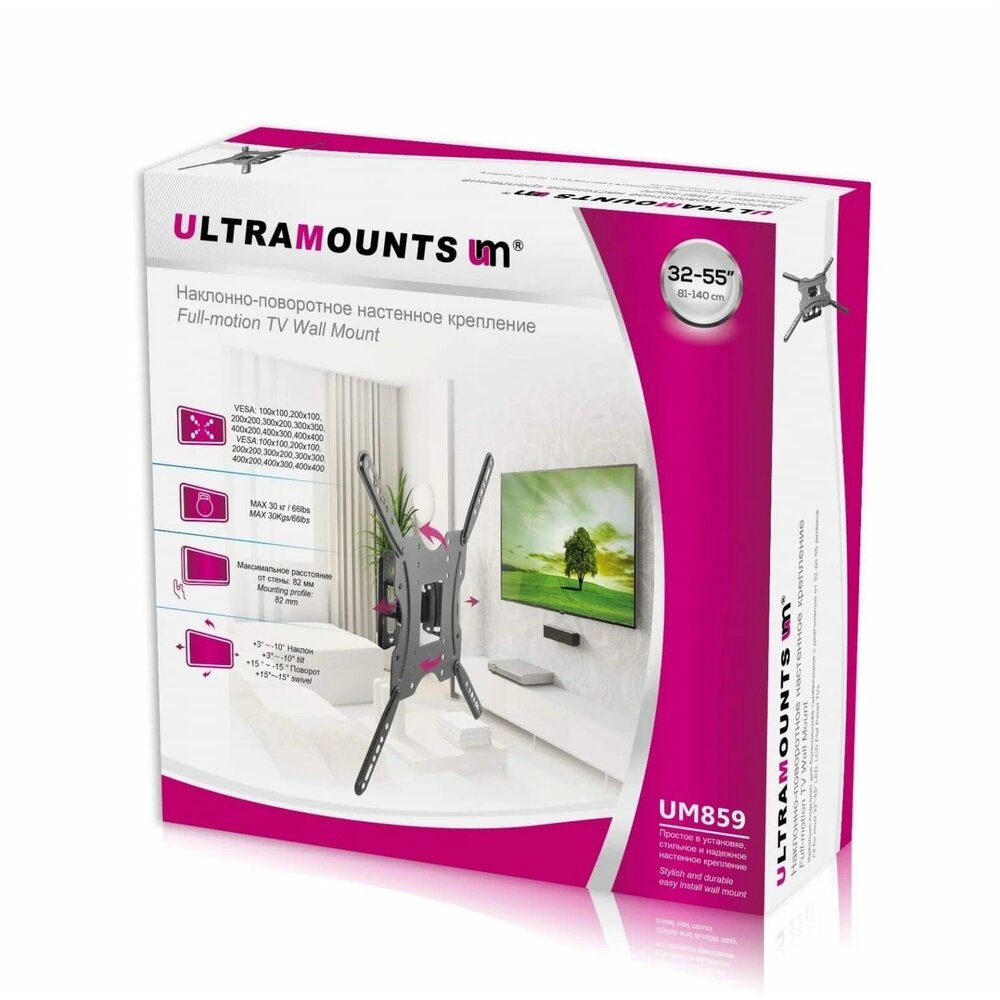 Кронштейн для телевизора ULTRAMOUNTS UM 859, 32-55", настенный, поворот и наклон, черный
