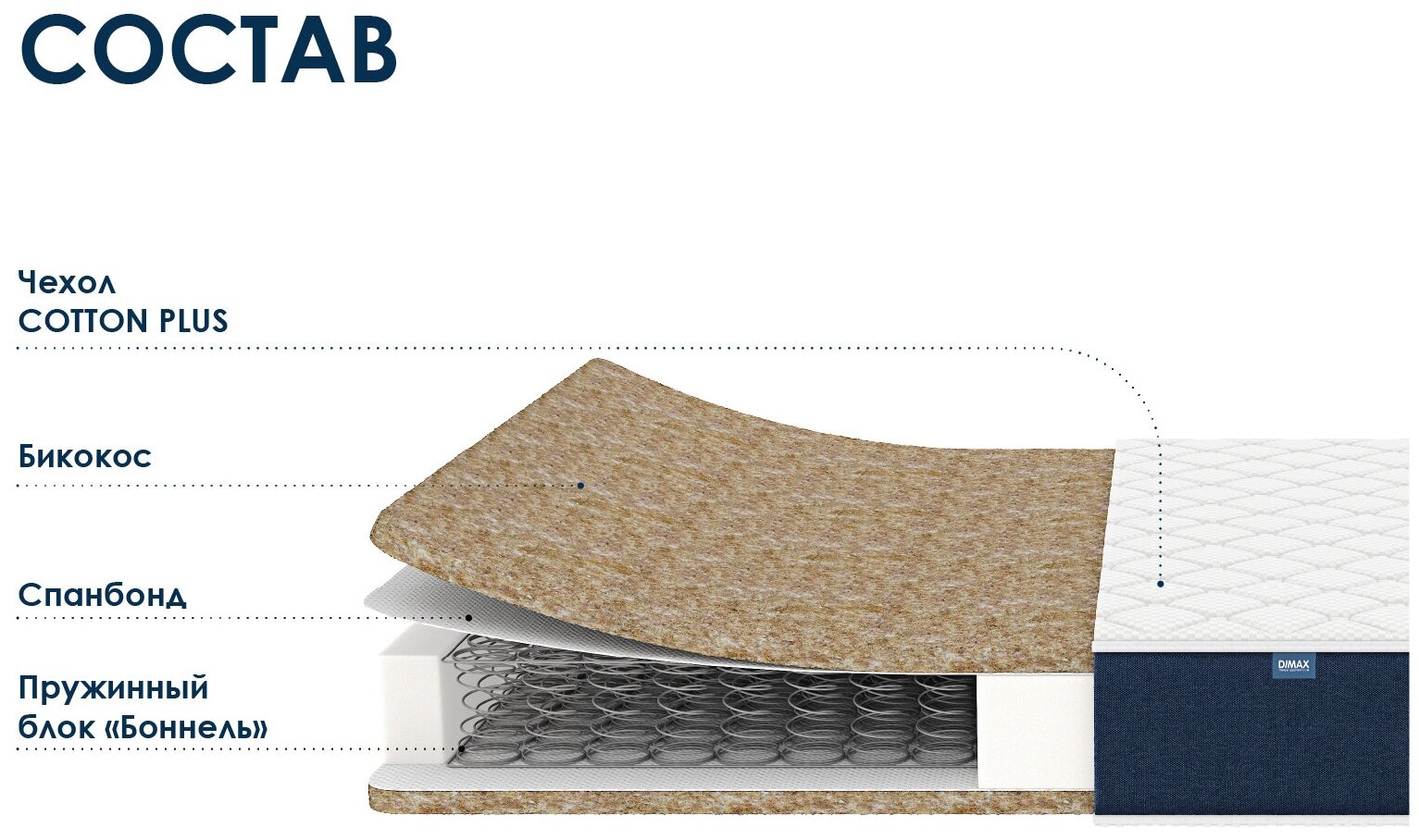 Матрас Взрослые матрасы Dimax Практик Бикокос Bonnel 110x220