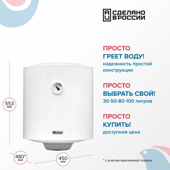Водонагреватель Regent NTS 50V 1,5K 1.5 кВт. 50 л. электрический накопительный, белый