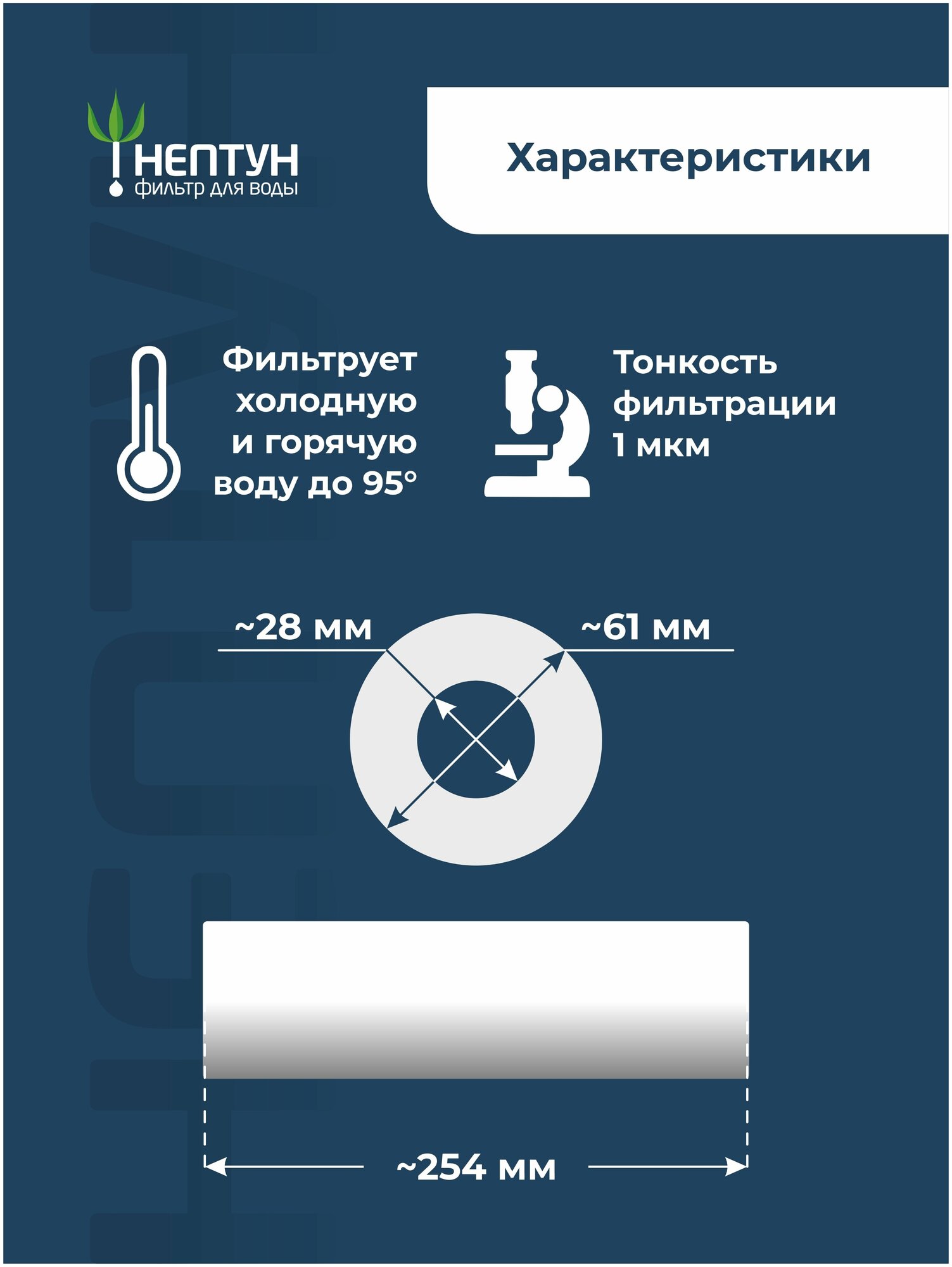 Лучшие цены. Картридж Нептун PS-10SL 1 мкм. Картридж из полипропиленовой нити производит механическую фильтрацию воды от песка, ила, ржавчины и прочих примесей. Данные картриджи по сравнению с картриджами из нетканого полипропилена имеют на 20-30% больший ресурс и при загрязнении не снижают давление воды на выходе из фильтра. При первом применении необходимо пропустить через картридж не менее 30 л воды. Магазины в вашем городе.
