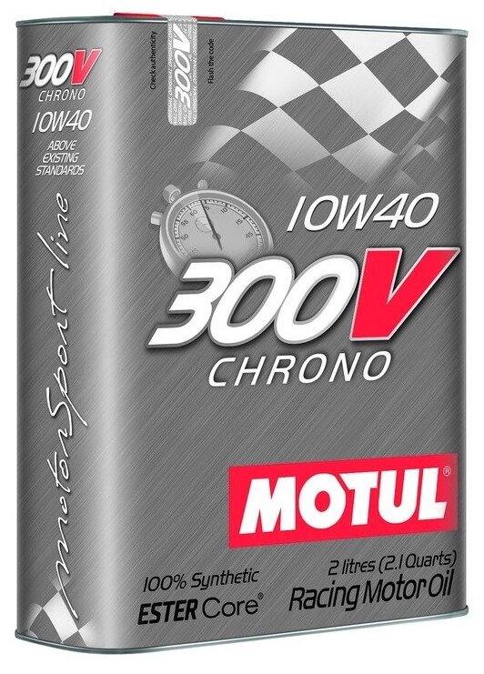 Лучшие цены. Описание В нашем интернет магазине Вы можете приобрести MOTUL 300V Chrono 10W40 - моторное масло 10w40 класса вязкости. Автомобильное масло motul 10W40 выполнено по технологии эстеров (сложных эфиров) и предназначено для спортивных двигателей (бензиновых, турбированных; дизельных; атмосферных, инжекторных, в том числе с непосредственным впрыском, а также карбюраторных). Motul 10w 40 - 100%-я синтетика. Магазины в вашем городе.
