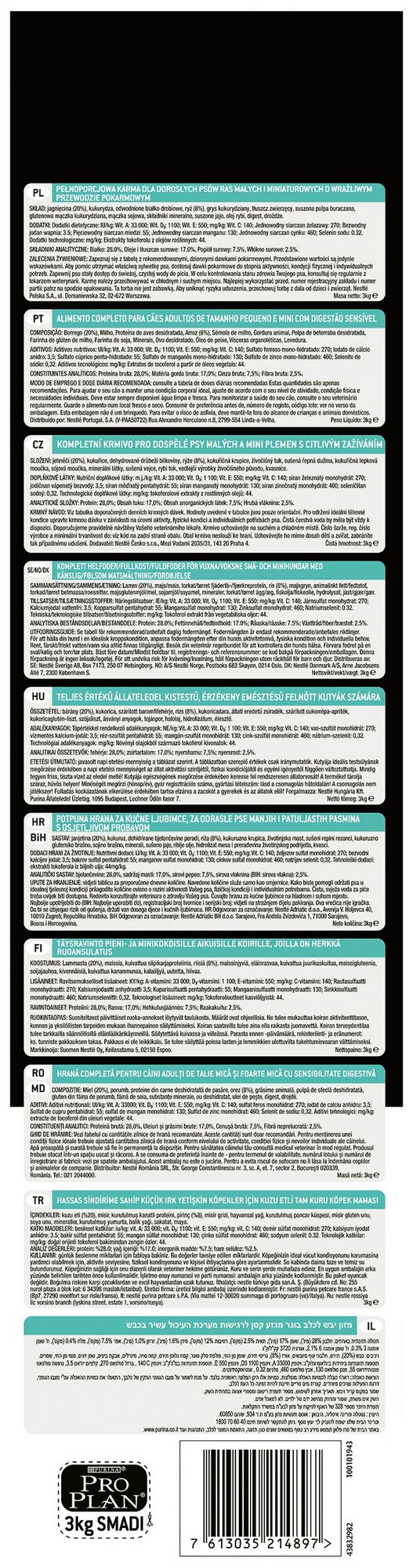 PRO PLAN ADULT DOG SMALL & MINI SENSITIVE DIGESTION для взрослых собак маленьких пород с чувствительным пищеварением с ягненком (3 + 3 кг)
