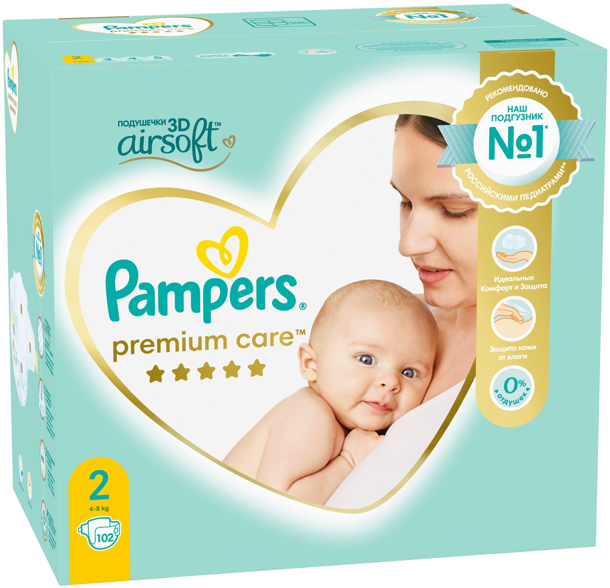 Подгузники Pampers Premium Care, размер 2, 102 шт, 4-8 кг