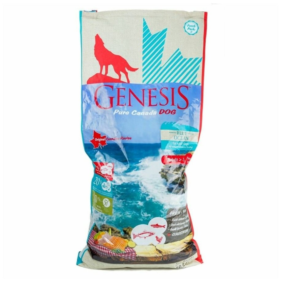Корм для собак GENESIS PURE CANADA BLUE OCEAN ADULT беззерновой для взрослых собак всех пород с лососем, сельдью и курицей (11,79 кг)