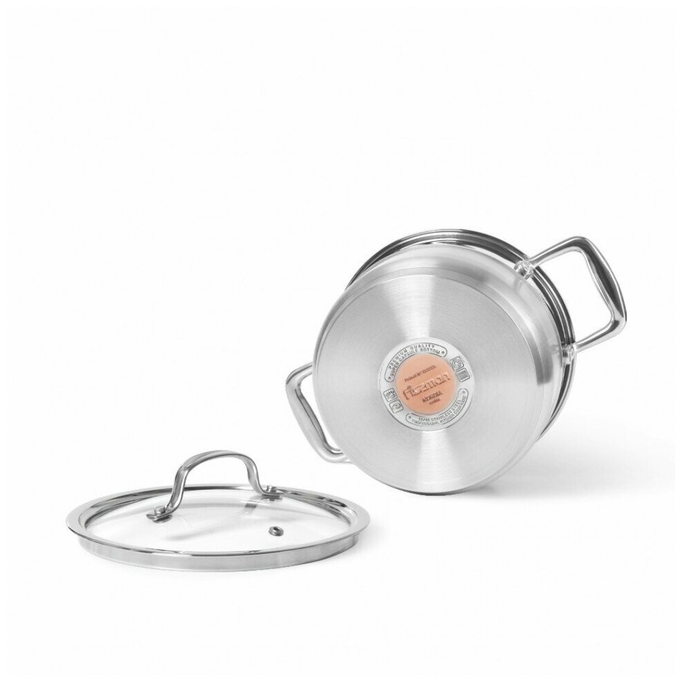 5374 FISSMAN Кастрюля NORDIA 24x14см / 6,4л с крышкой (нерж.сталь) Ручки-нерж.сталь; Крышка-стекло с ободком; Индукция; Термоаккумулирующее многослойное дно.