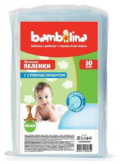 Подгузники Детские пеленки Bambolina 40*60 см 10 шт.