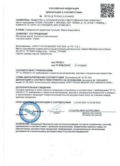 5/40 Fullmax OPET 205л. синт. API SN Масло моторное OPET 601214820 | цена за 1 шт | минимальный заказ 1