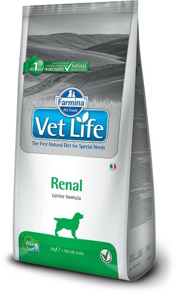 Лучшие цены. Хроническая почечная недостаточность; вспомогательная терапия при застойной сердечной недостаточности. Farmina Vet Life Renal — диетический сухой корм для собак, специально разработанный для поддержания функции почек в случаях почечной недостаточности. Механизм действия: Farmina Vet Life Renal содержит ограниченное количество белков, фосфора и натрия для снижения метаболизма азота; способствует снижению гиперфосфатемии и тормозит развитие гиперпаратиреоза. Магазины в вашем городе.