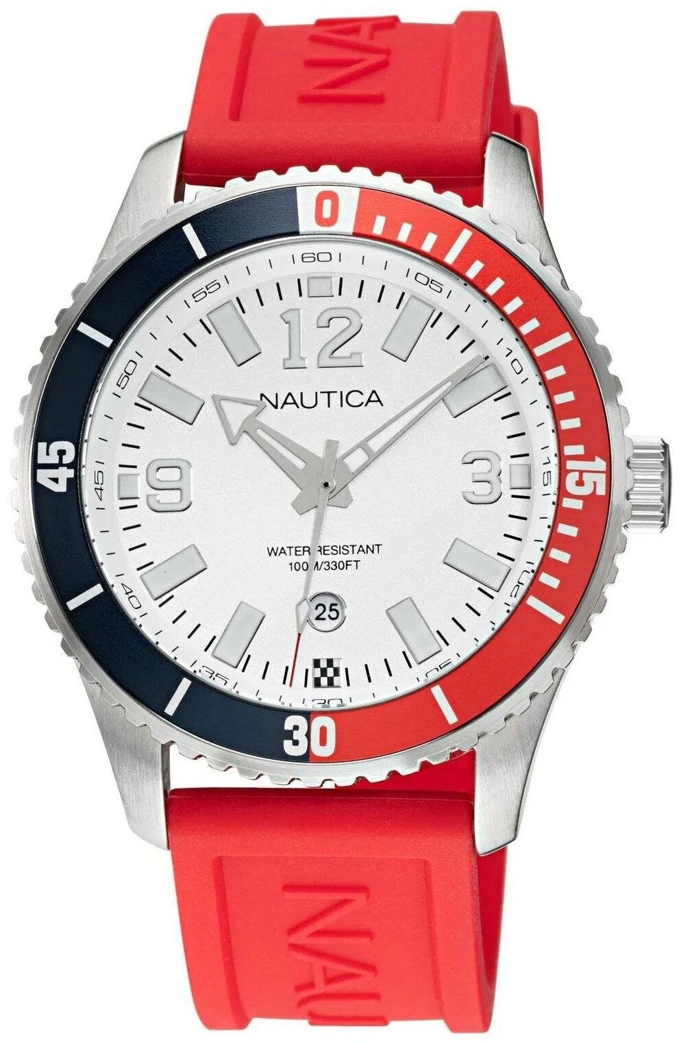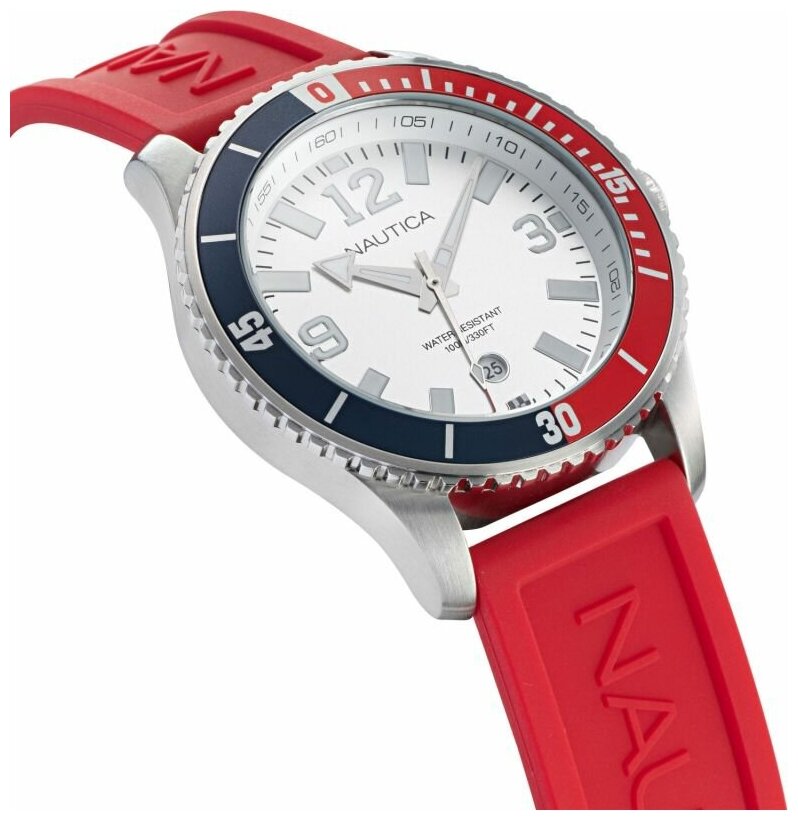Лучшие цены. Часы наручные Nautica NAPPBS160. Современный дизайн часов идеально подойдет для молодого, активного и модного мужчины, который ценит стиль и качество вне времени. Pacific Beach. Круглый корпус из нержавеющей стали с рифленым безелем. Широкие стрелки с нанесенным люминесцентным составом, который светится в темноте. Метки в виде штрихов и арабских цифр 3, 9 и 12. Окошко даты находится в положении 6 часов. Магазины в вашем городе.