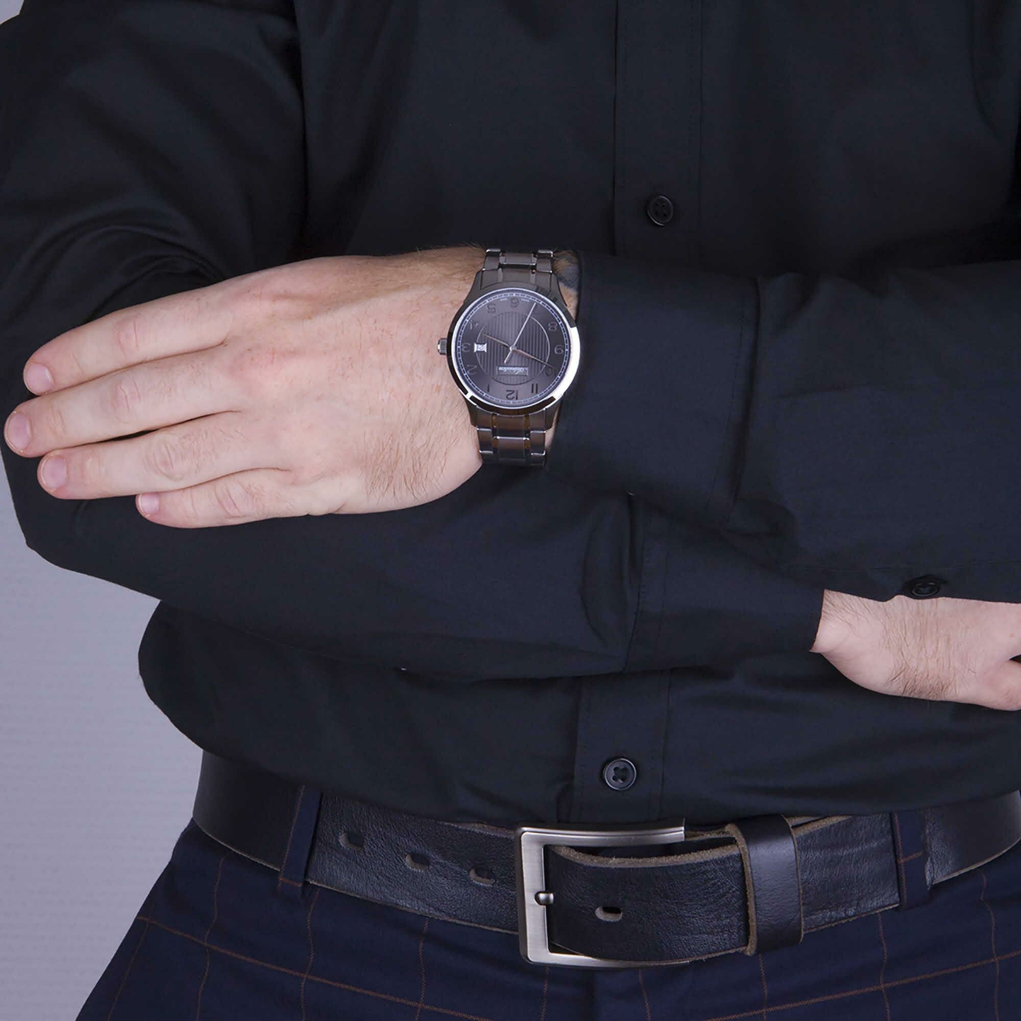 Лучшие цены. Мужские кварцевые часы. Календарь: число. Круглый корпус выполнен из нержавеющей стали. Диаметр корпуса составляет 42 мм. Стальной браслет, раскладывающаяся застежка. Сапфировое стекло устойчивое к появлению царапин. Водозащита WR50 (мытье рук, дождь). Магазины в вашем городе.
