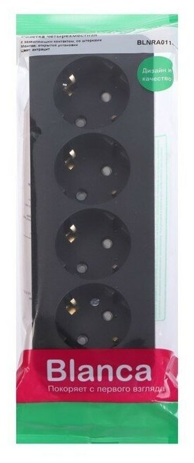 Розетка BLANCA четверная 4х2P+E с заземлением со шторками 16A о/п Антрацит BLNRA011416