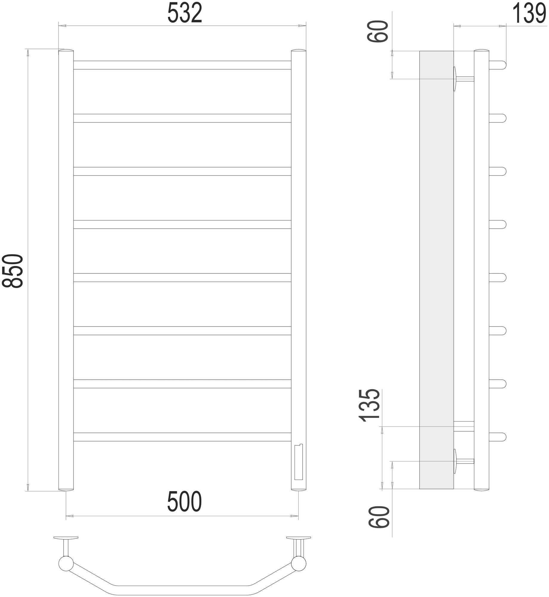 Электрический полотенцесушитель Terminus Виктория П8 500x850