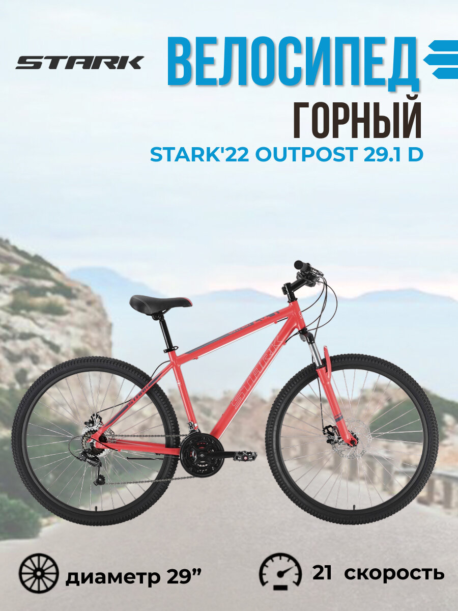 Велосипед горный Stark'22 Outpost 29.1 D 21 скорость рама 20" 2022 года красный/серый