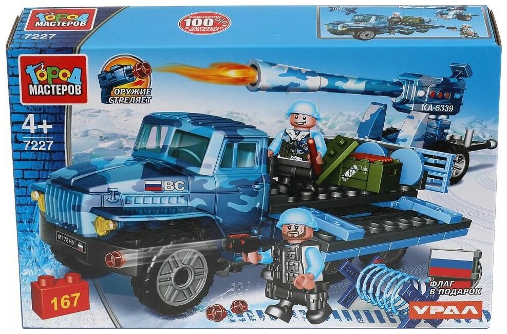 Лучшие цены. Особенности и комплектация: - 167 деталей - 2 фигурки - флаг в подарок - оружие стреляет - совместим с моделями конструкторов мировых брендов - все детали легко и плотно соединяются между собой С помощью этого занимательного конструктора ваш ребёнок может собрать реалистичную модель военной машины и вместе с отважными солдатами отправиться на увлекательную спецоперацию. Набор вдохновит малыша на новые увлекательные сюжеты для игр и станет гордостью его игрушечной коллекции. Магазины в вашем городе.
