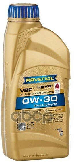 Лучшие цены. RAVENOL VSF SAE 0W-30 полностью синтетическое моторное масло на основе полиальфаолефинов (ПАО), изготовленное с применением технологии CleanSynto® для легковых дизельных моторов с и без турбонаддува и прямым впрыском топлива. Специальный комплекс присадок с вольфрамом RAVENOL VSF SAE 0W-30 обеспечивать модификацию поверхностей трения, их выглаживание и снижение износа и значительного повышения механической эффективности. Характеристика: Вязкость высокотемпературная (HTHS). Магазины в вашем городе.