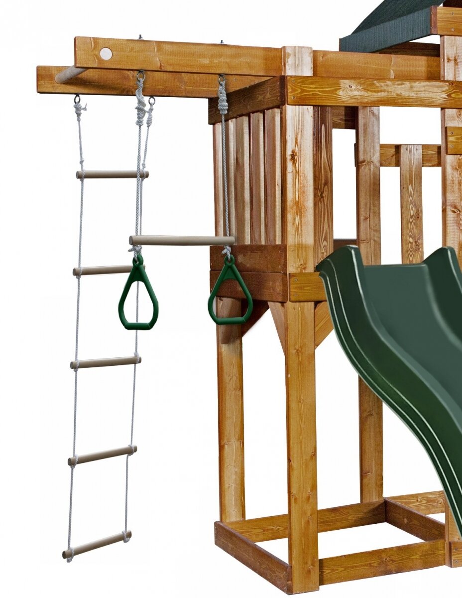 | Компоненты | лестница (ступеньки) / веревочная лестница / гладиаторская сетка / скалодром / рукоход / гимнастические кольца / стол / песочница |