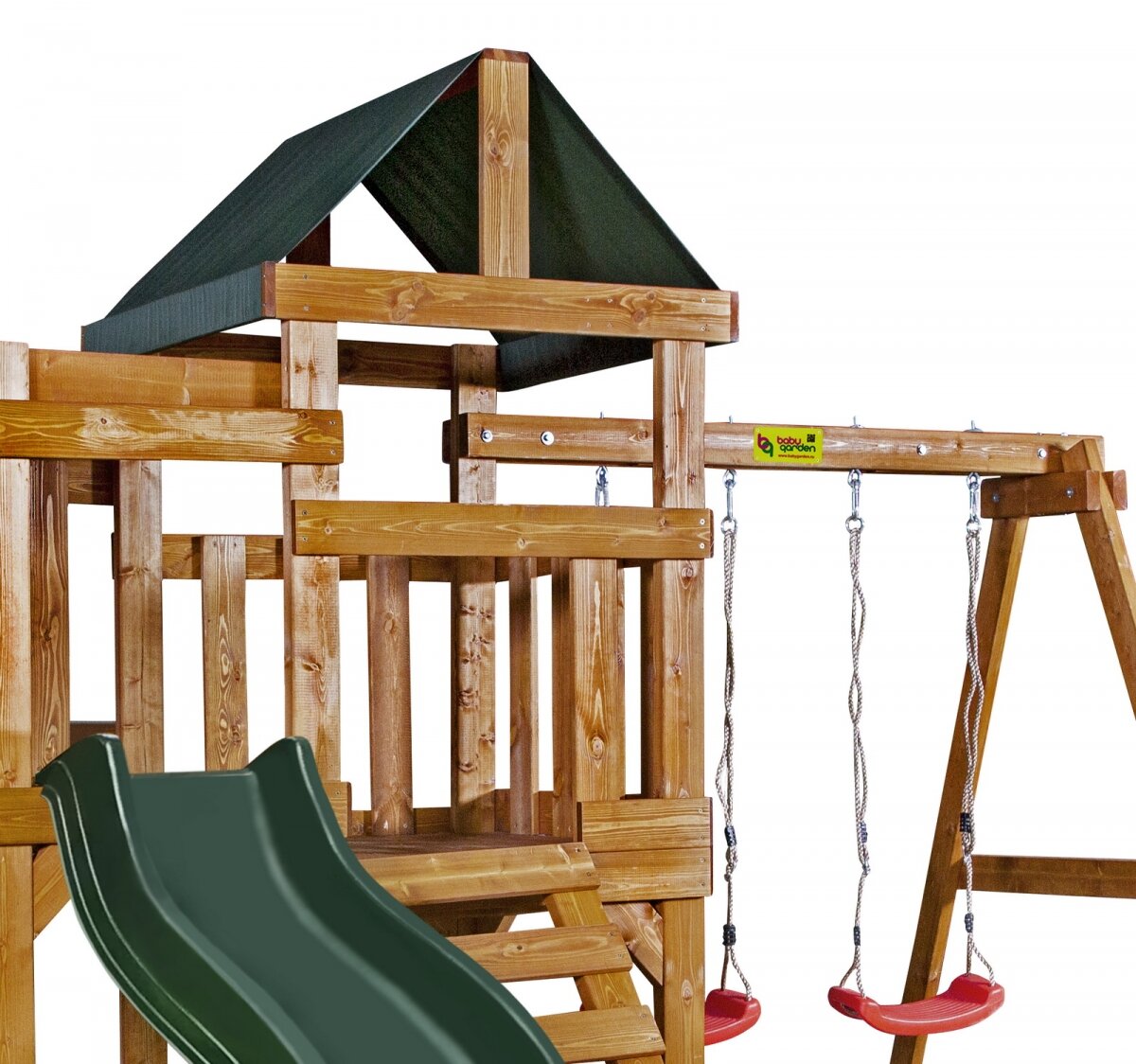Лучшие цены. Игровая площадка серии BabyGarden Play - доступное решение для экономных и требовательных родителей. Комплекс оборудован всем необходимым для веселых и увлекательных игр детей.Конструкция имеет эргономичную форму и не травмоопасная, что особенно важно для малышей. Игровая площадка изготовлена из хвойной древесины северных пород, обработана гипоаллергенным покрытием на водной основе (не содержит токсичных растворителей). Магазины в вашем городе.