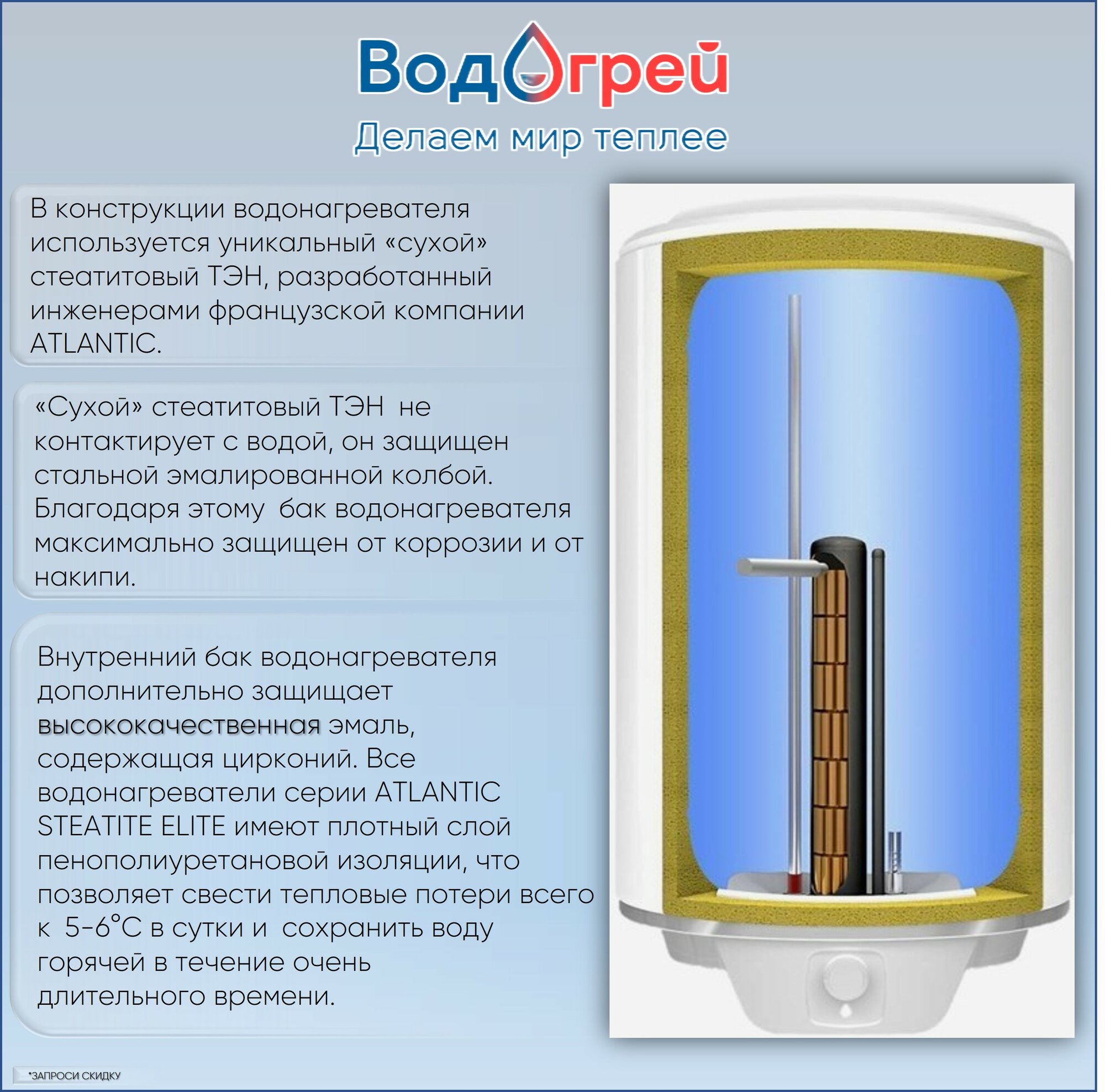 Водонагреватель накопительный Atlantic Steatite Elite 50 л. (сухой ТЭН)